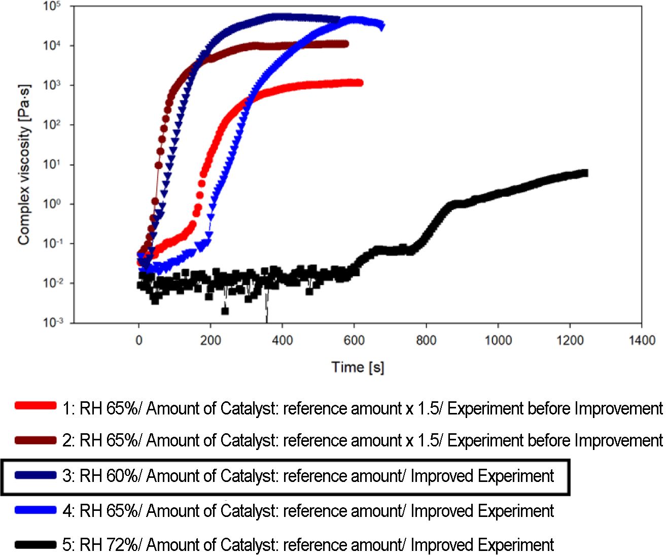 공정에서 일어나는 점도 변화를 정량화하기 어려우므로, 본 연구에서는 개선된 수분 제어 방법을 적용하여 보다 정밀하고 재현성 있는 점도 데이터를