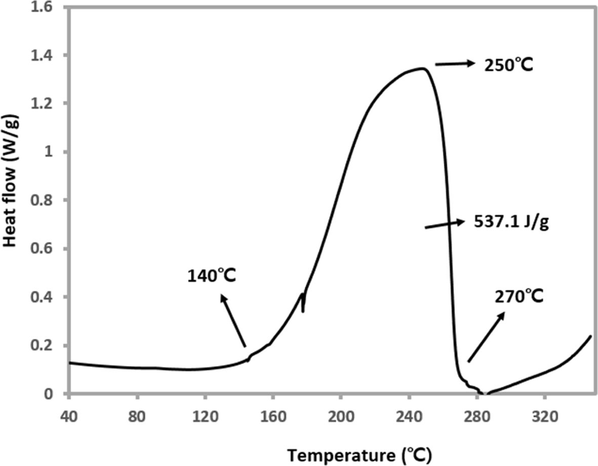 최대 발열 온도는 약 250oC이며, 약 270oC에서 경화 반응이 종결하였다.