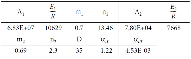 경화 거동을 해석하였다. 경화 거동 분석을 위해 Kratz[12,13] 모델을 이용하여