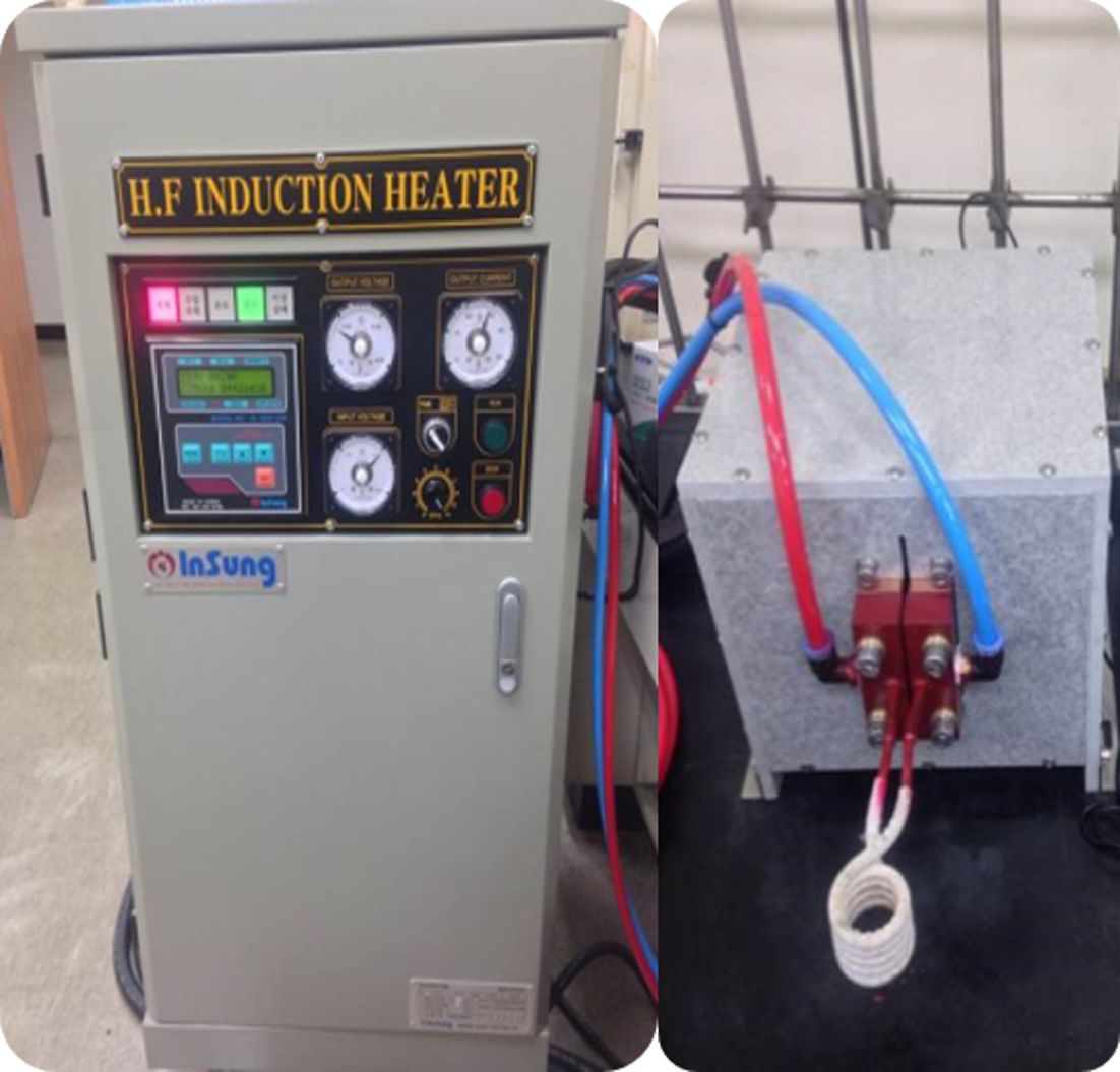 4 turned helical coil의 유도가열기(Insung heavy industry, Korea)를 사용하였다. 전단강도 시험은