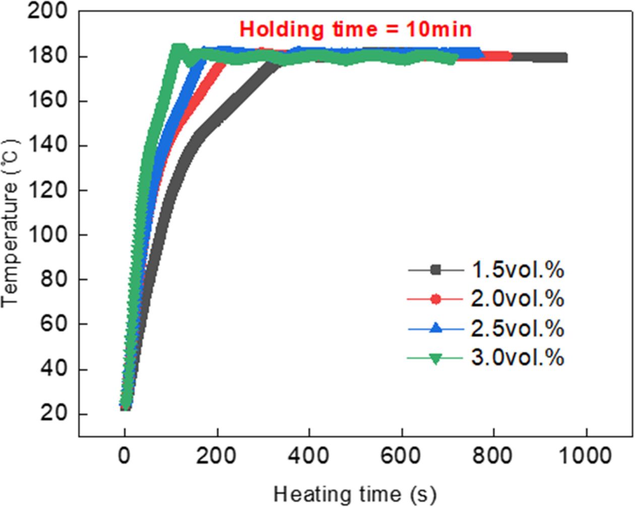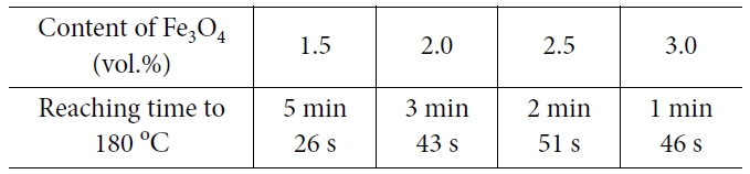 Table 2 Reaching time to 180oC of adhesive on the variation of 100 nm Fe3O4 content |