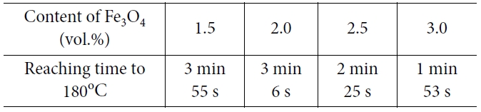 Table 3 Reaching time to 180oC of adhesive on the variation of 0.2 um Fe3O4 content |