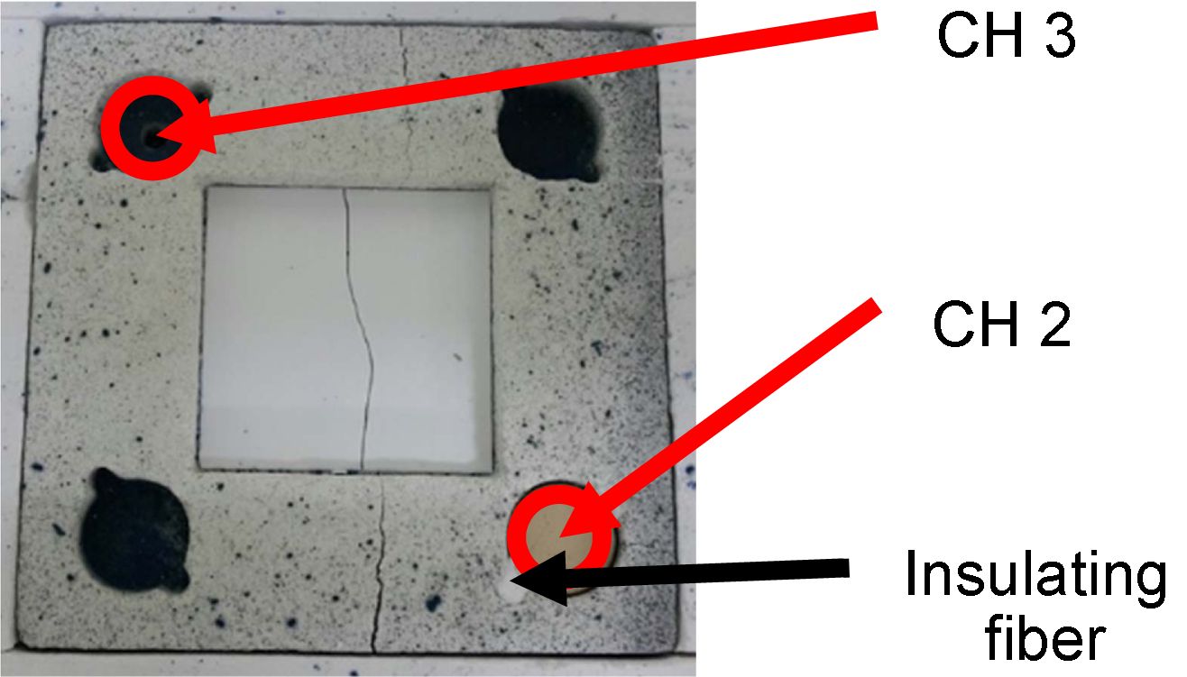 홈이 있는 단열벽돌을 제작한 후, 샘플을 한 곳에 위치시켰다. 채널 2의 홈에 샘플을 위치시켰고 샘플의 하부에 온도센서(thermocouple)