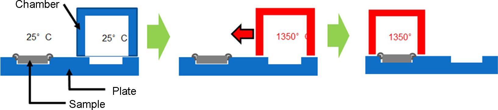 Fig. 2 The schematic diagram of basic insulation test; The chamber moves leftward as temperature reaches at 1350oC |