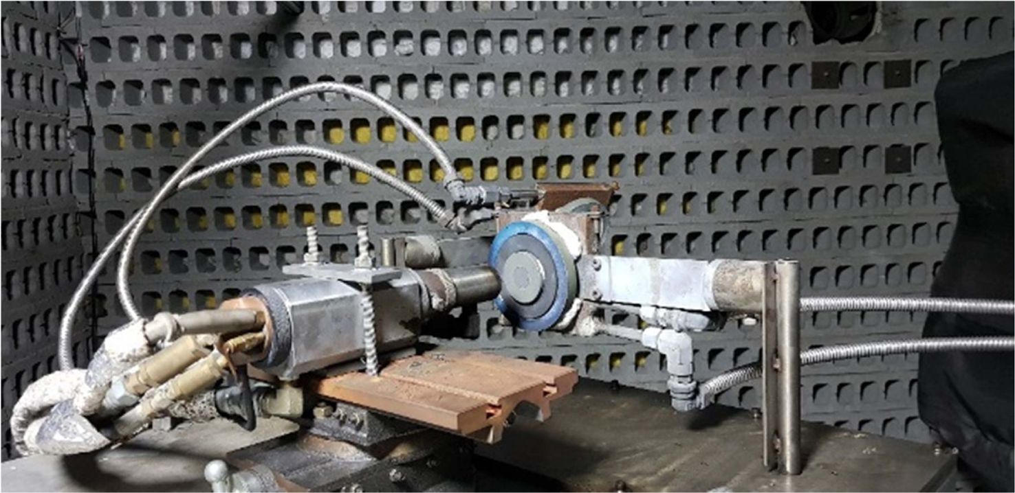 고온버너실험은 HVOF장비를 활용하여 산소-등유 혼합 연료를 연소시켜 고온의 화염을 발생시켰다. 이때, 산소는 유량 1,500