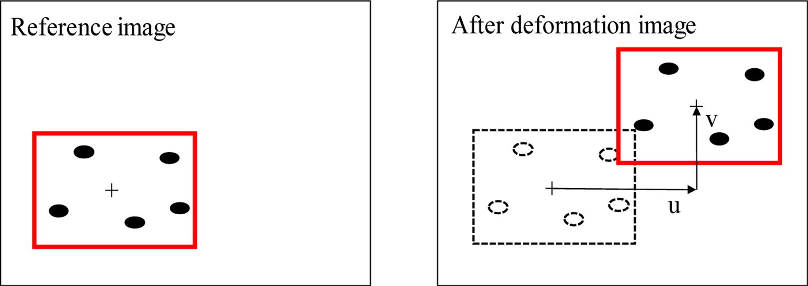 Fig. 1은 DIC측정의 개요도이다. 디지털 이미지 상관법은 재료 표면의 불규칙한 패턴을 만들어 변형전과 변형후의 이미지를 디지털