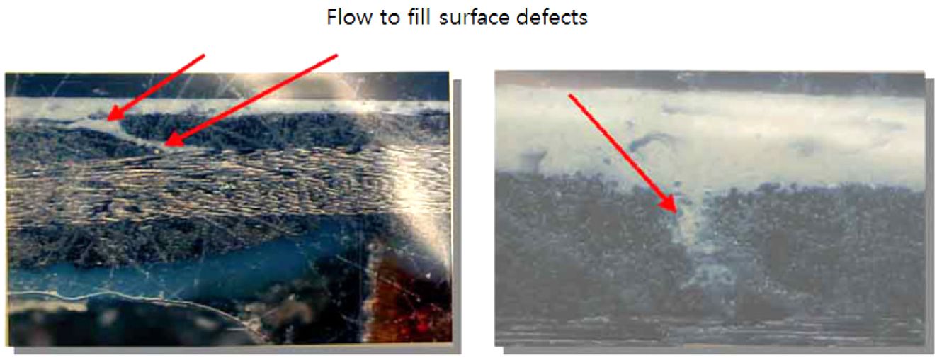 경화되어 내부 기포가 배출되는 데 있어 차단막으로 작용할 수 있다[13].