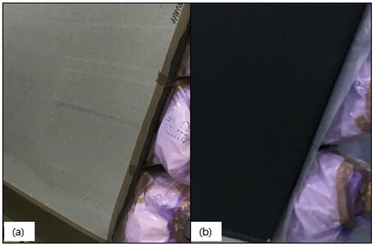 Fig. 11 Surface condition for Cured specimens (a) Specimen #1 with full application of surface film (b) Specimen #2 without surface film |