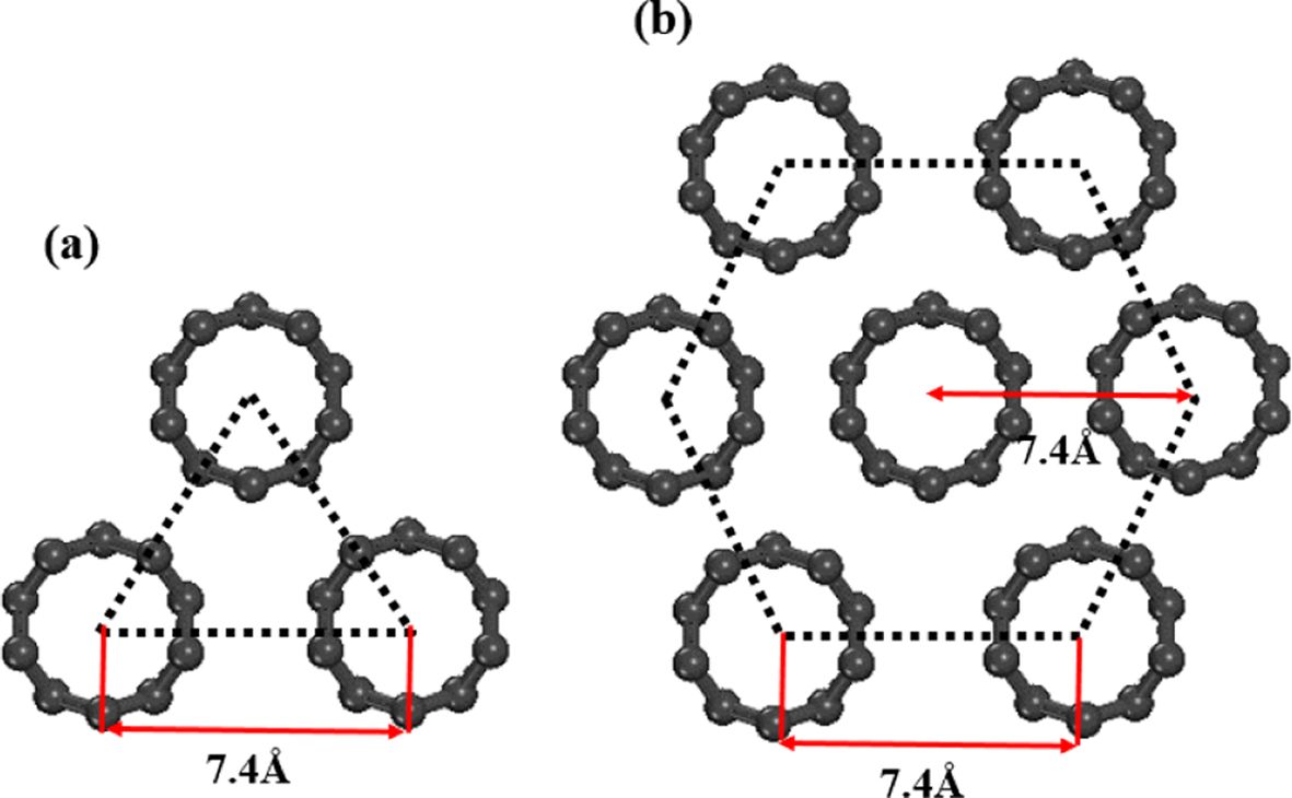 including: (a) three CNTs and (b) seven CNTs |