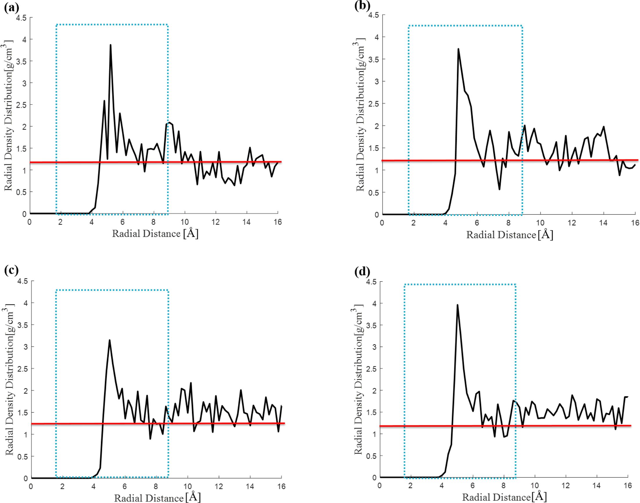 Fig. 4에서 제시하고 있다. 반경 방향 밀도 분포를 통해서 계면의 존재를 확인할 수 있었다. 파란 색 점선으로 이루어진 네모 상자 안쪽의 영역의