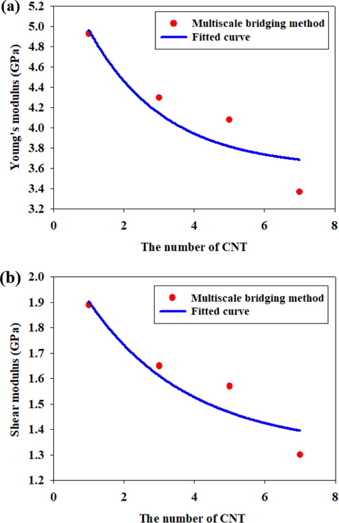 전단계수이다. 다발당 탄소나노튜브의 수가 증가함에따라 계면에서의 영률과 전단계수가 점진적으로 감소함을 확인할 수 있었으며, 최소자승법을 통하여