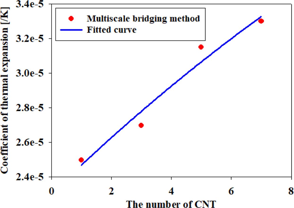 역산하였다. 그 결과, Fig. 9과 같이 계면에서의 열팽창계수를 도출하였다. 탄소나노튜브가 균일하게 분산된 경우, 실제로 계면에서의