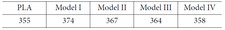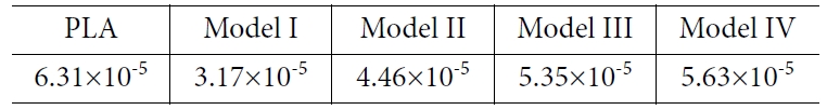 사용한 PLA의 영률와 열팽창계수는 분자동역학 시뮬레이션을 통해서 얻은 값을 사용하였다.
