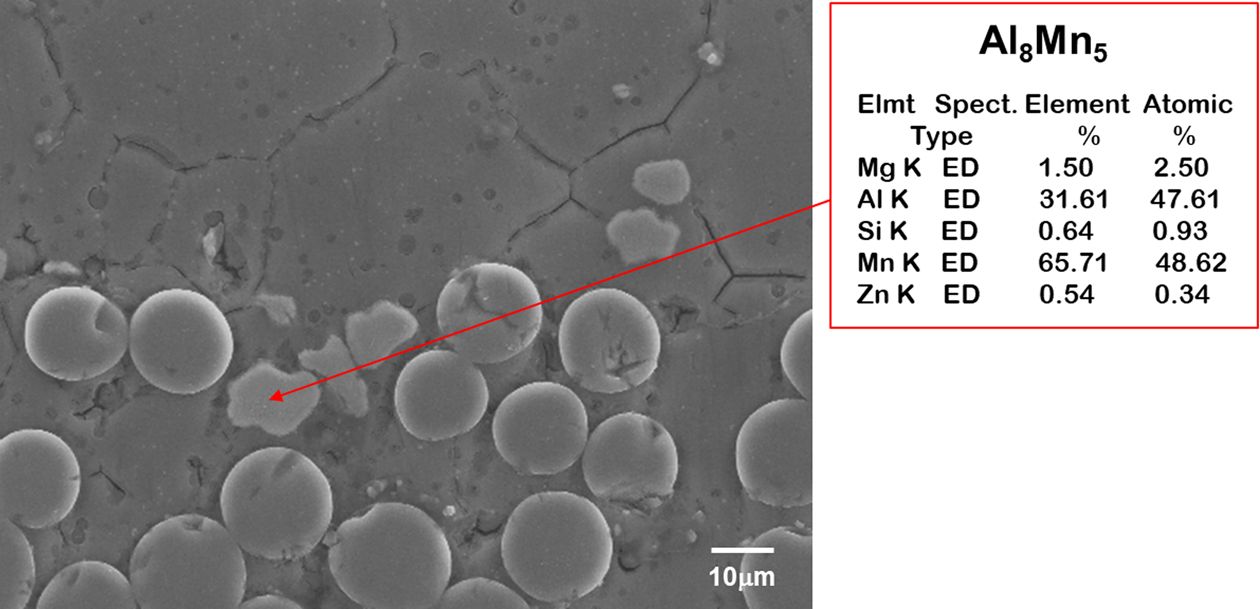 SEM-EDS 분석을 진행한 결과, 용체화 처리 후 SiCf 주위에 미세한 Al8Mn5상이