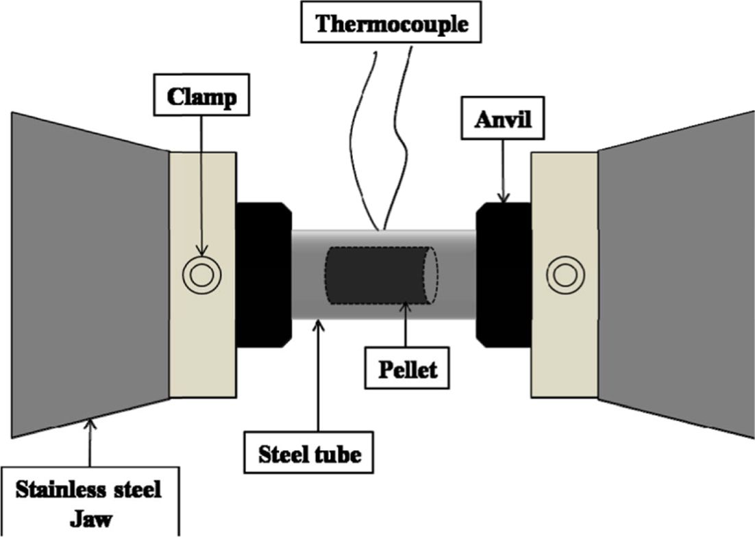 1500 시험 장치를 사용하였다. 압착된 Al-Ti-C 압분체는 steel tube 내부에 위치하여 시험 중 압분체가 손상되지 않도록 하였다.