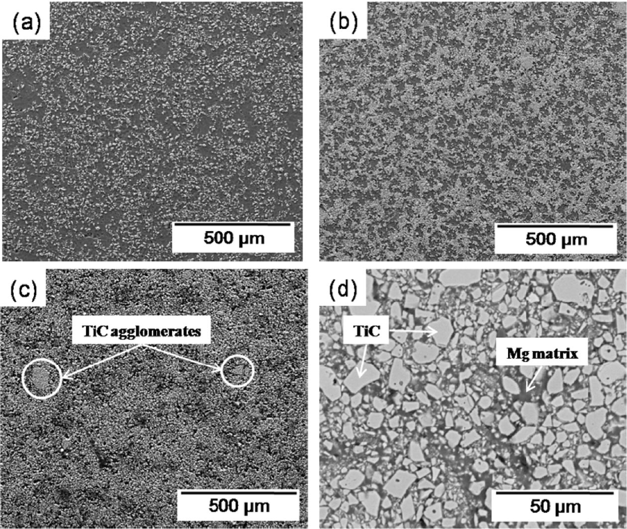 TiC 입자가 강화된 마그네슘 기지 복합재료는 낮은 밀도, 우수한 강도, 탄성계수 그리고 내마모성을 가져 경량 부품소재로서 자동차나