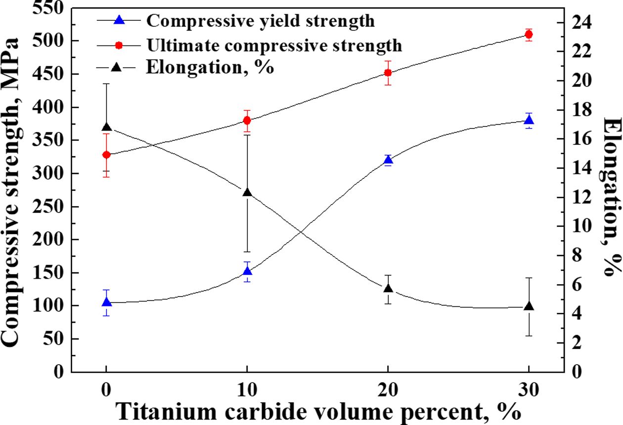 higher volume fraction of TiC reinforced composite showed superior compressive