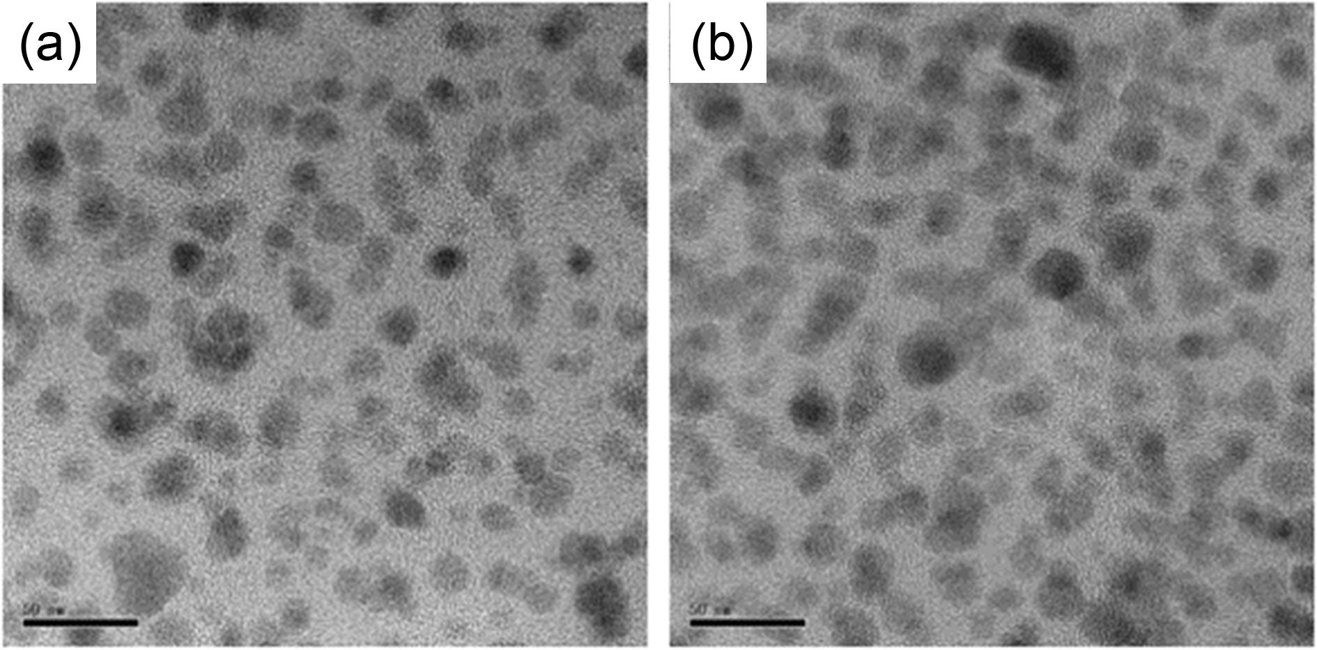 Fig. 1 Nano Epoxy TEM photo (a) 10%, (b) 18% |
