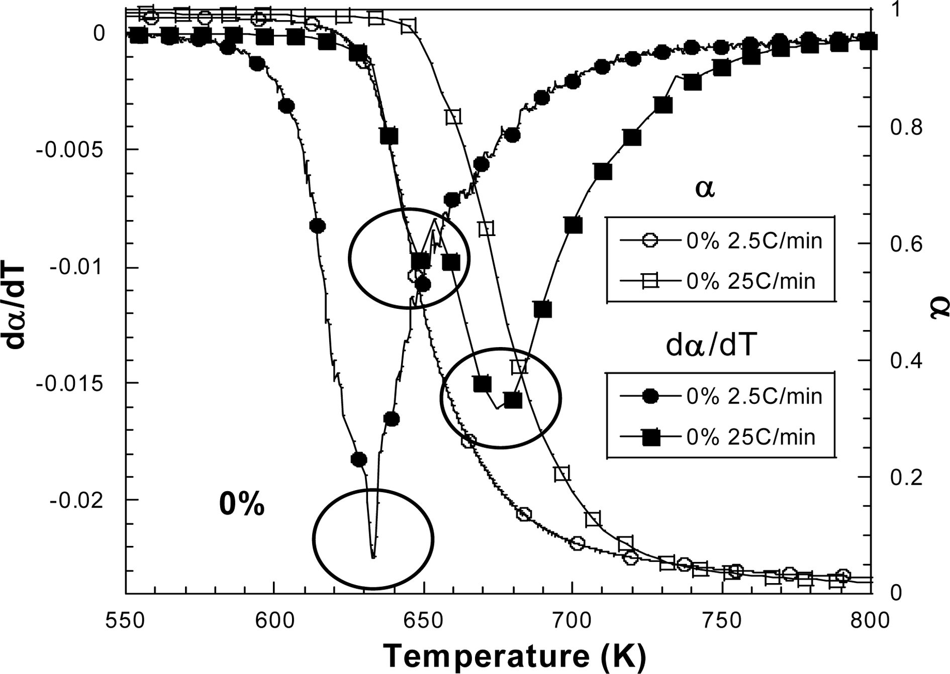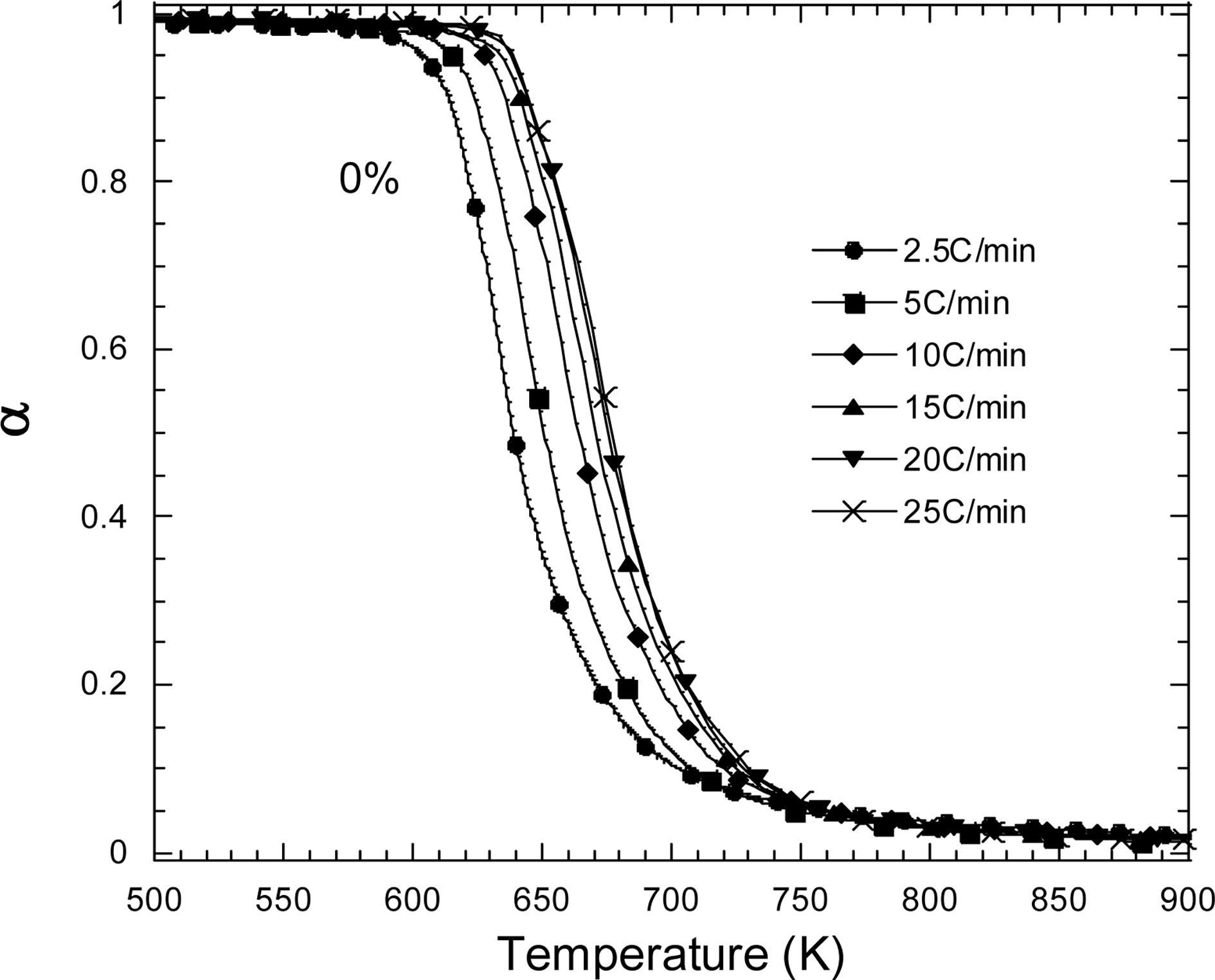 Fig. 2은 0% 시편이 주어진 6가지 승온률에 따라 열화될