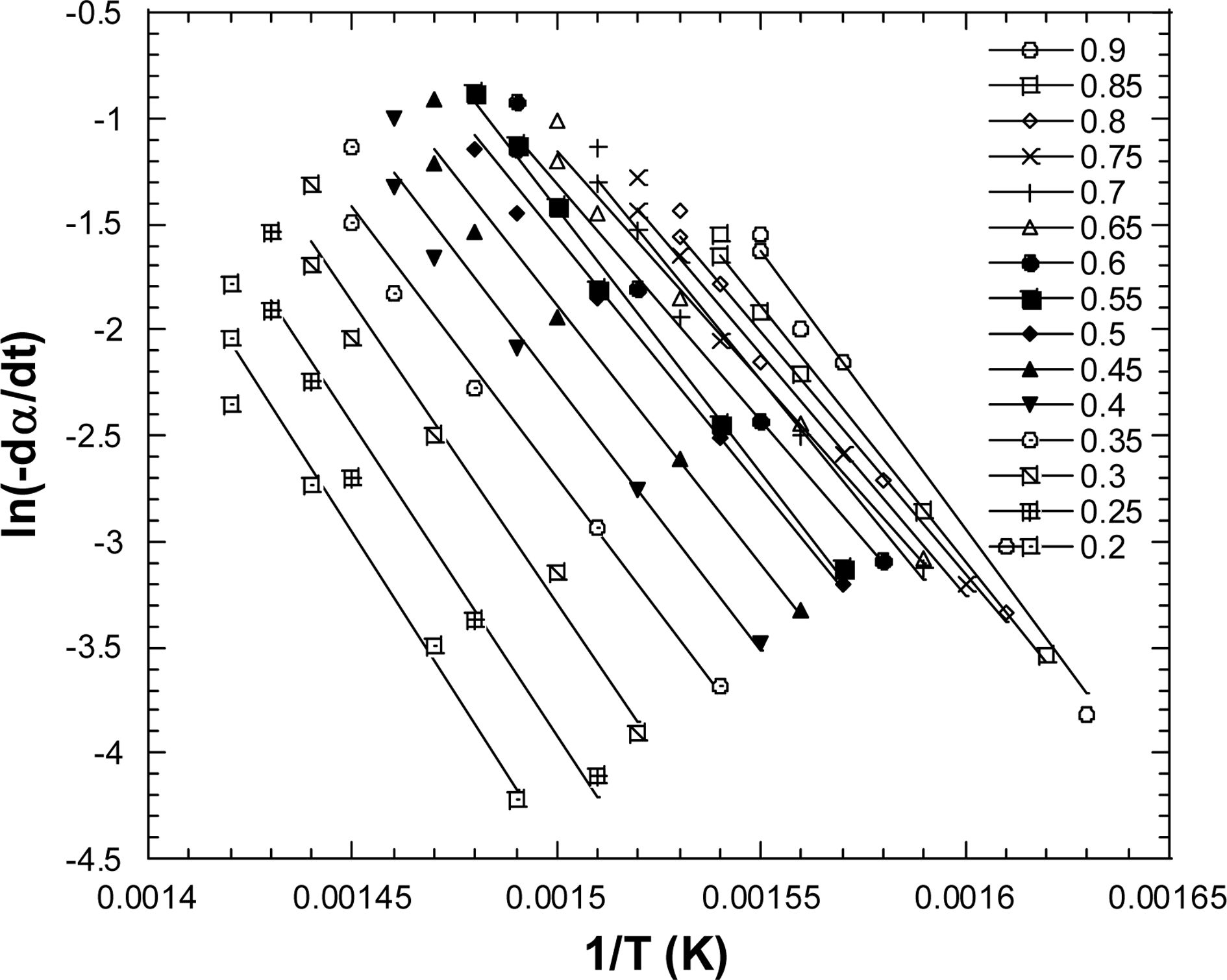 Fig. 3은 Friedman 방법에 따라 활성화에너지를 구하기