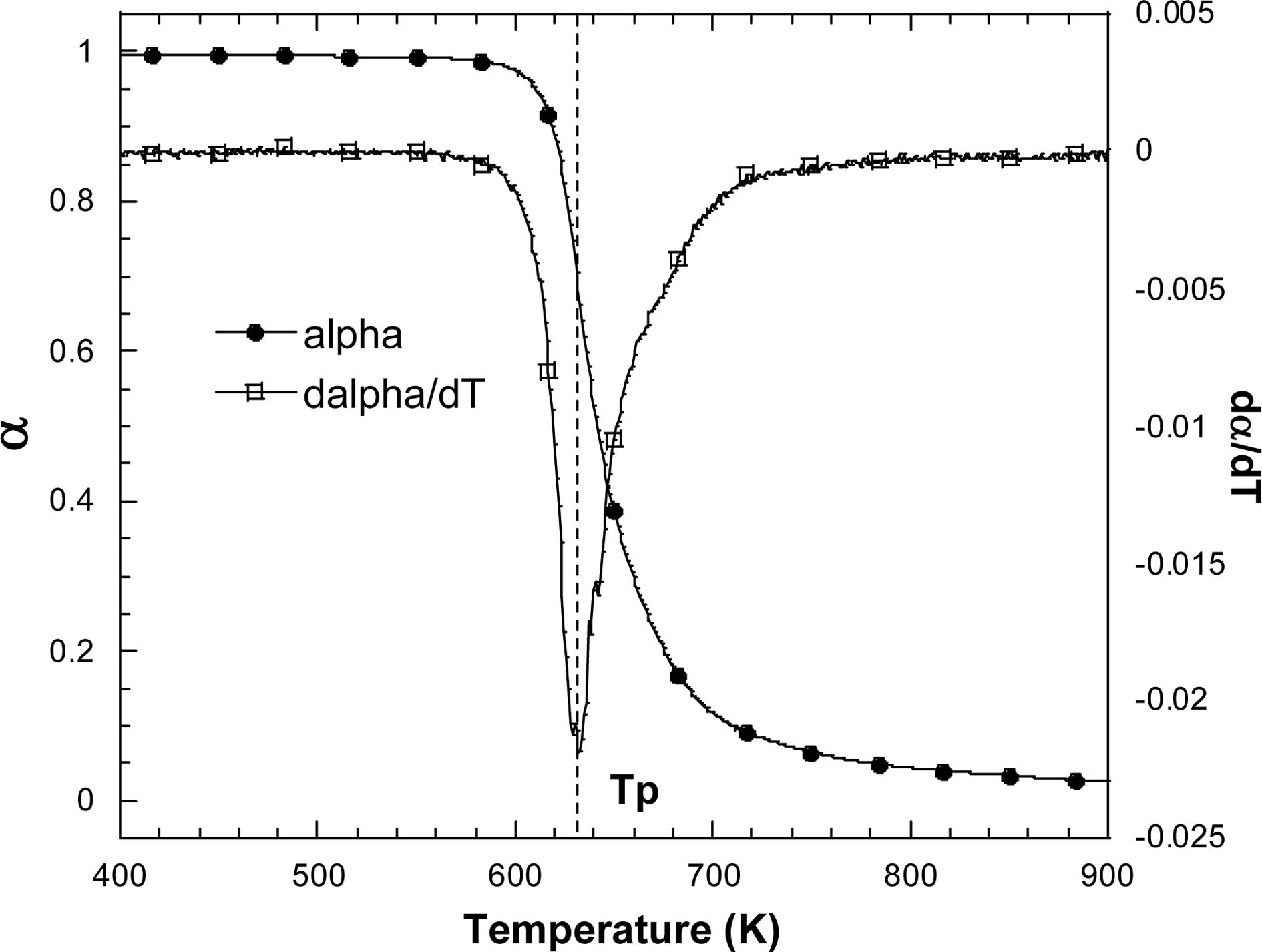 Kissinger 모델은 변화율이 최대가 될 때, 즉 (d[dα/(dt]))/(dt = 0)인 경우 Tp를