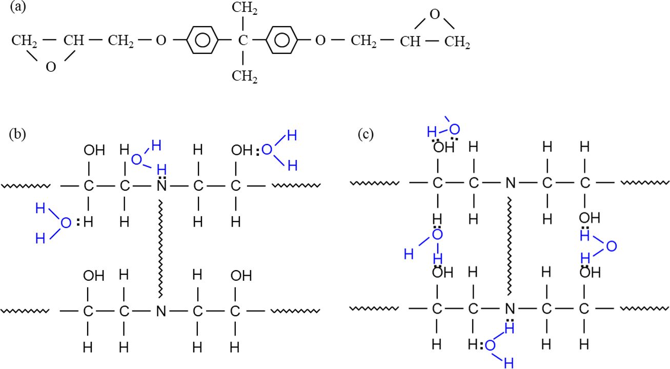 본 연구에서 사용된 에폭시의 분자 구조는 Fig. 5(a)에 나타내었다. 이러한 에폭시가 수분 환경에 노출되었을 때 Fig.