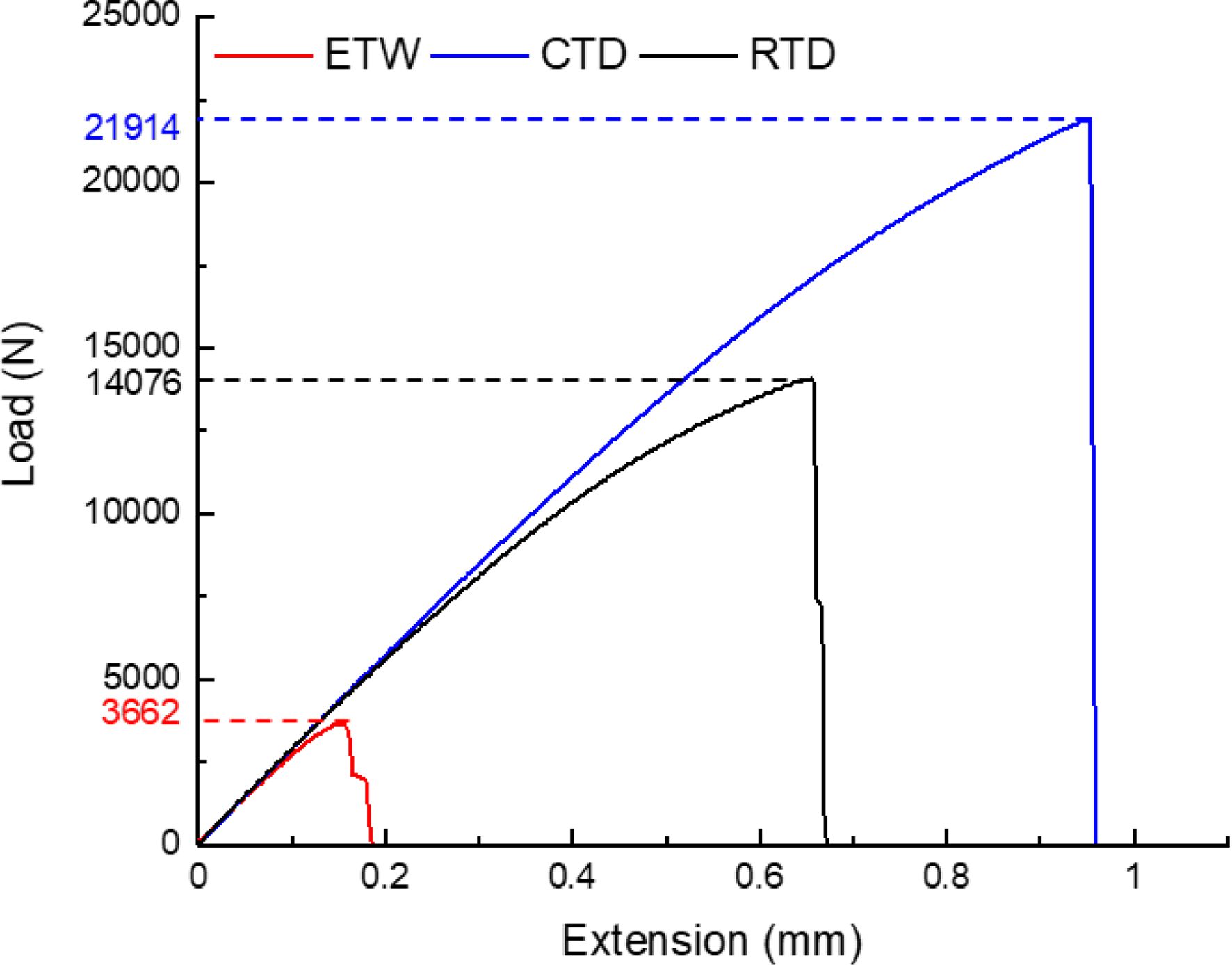 Fig. 7에 제시된 하중-변위 그래프에서 파손까지의 기울기를 통해 저온 환경에서 소재와 접착제의 취성이 증가되었음을 확인할 수 있다.