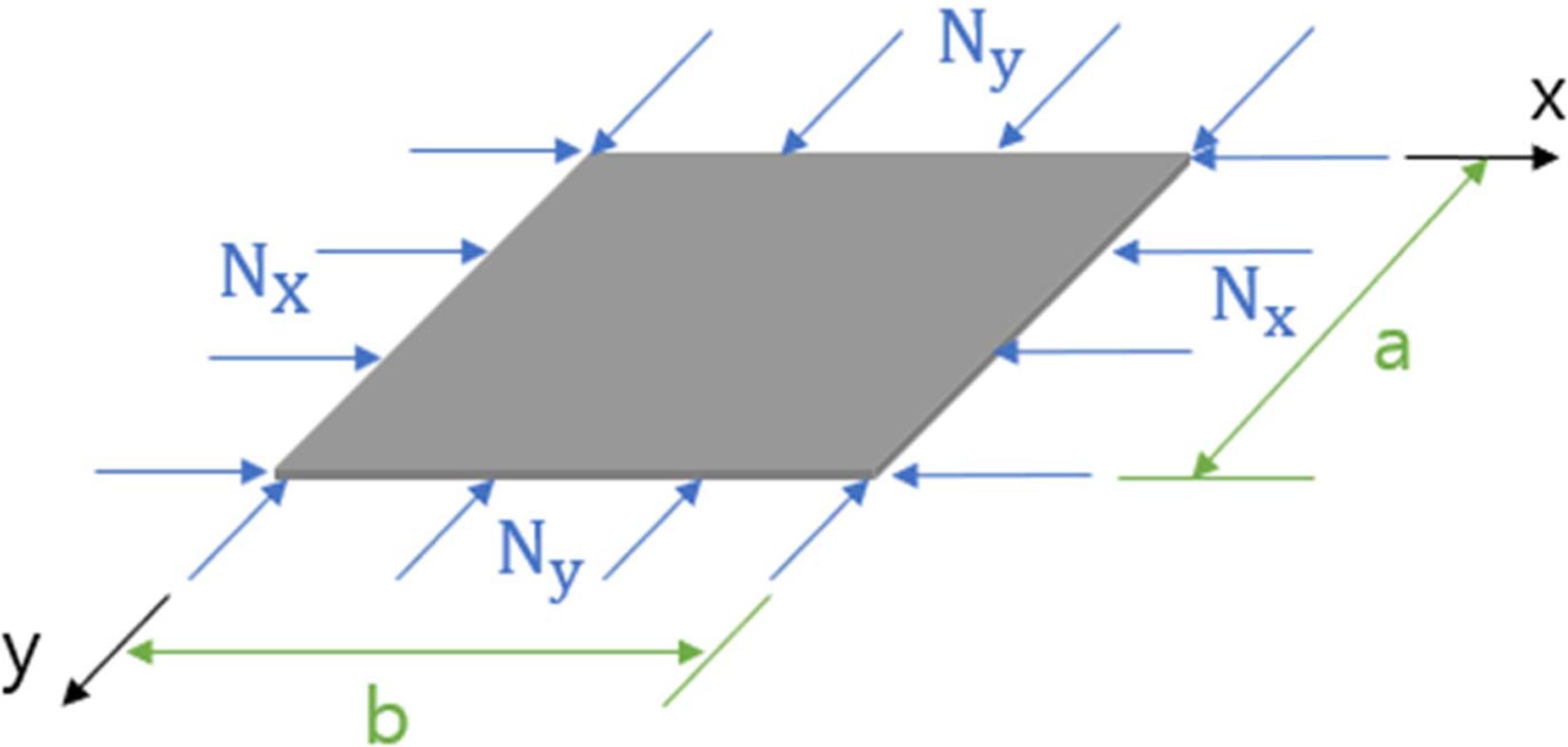 압축 하중 Nx, Ny이 가해질 때, x방향으로의