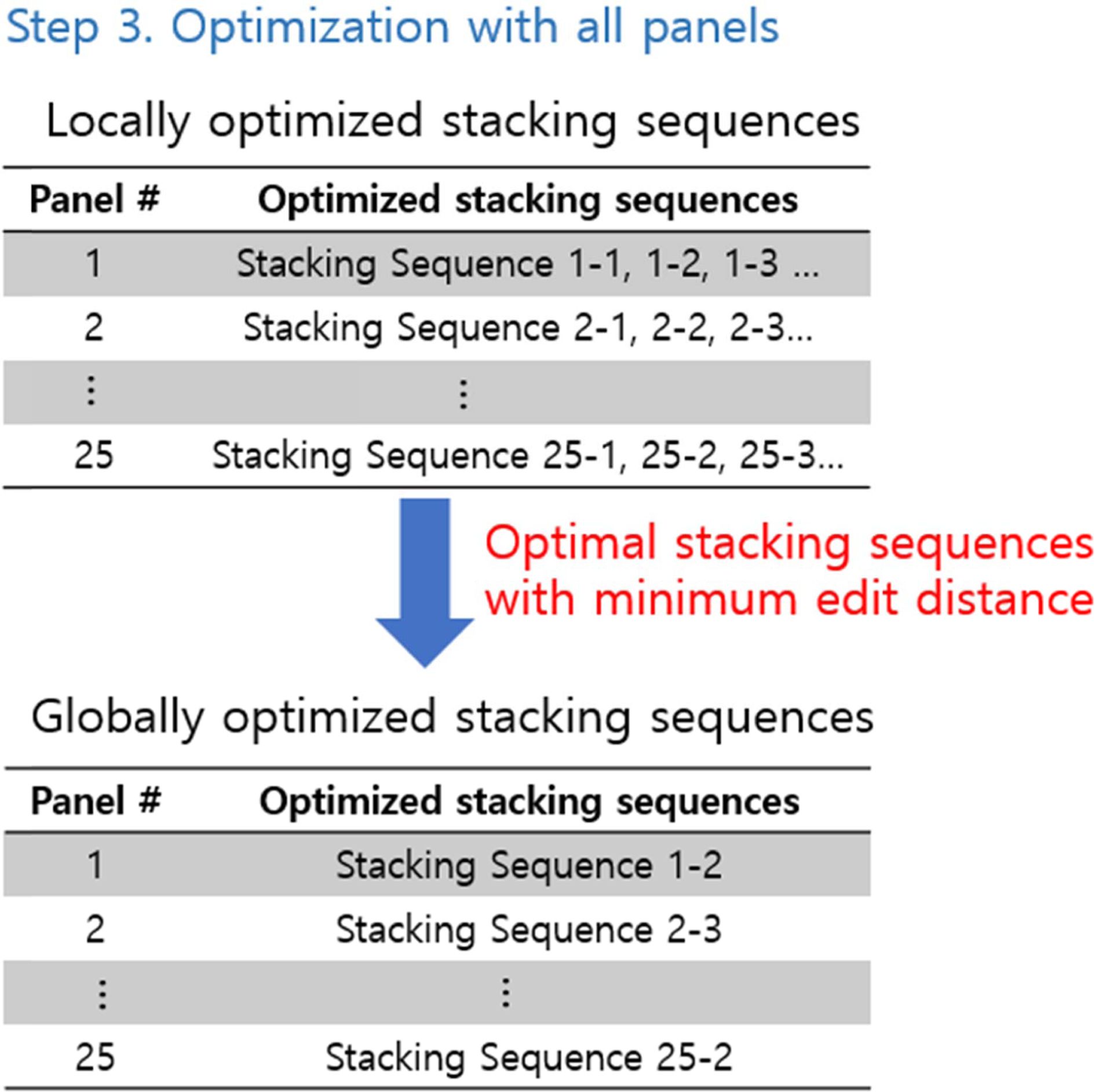 적층판을 여러 개의 패널로 나누어 응력 분포가 낮은 곳의 적층 개수를 줄였다. 동시에 편집 거리(edit distance) 알고리즘을 기반으로