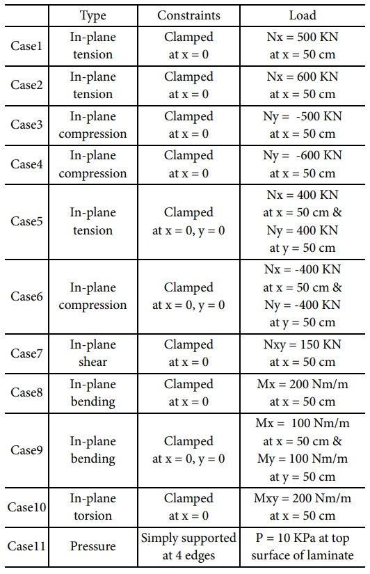 확인하기 위해서 면내 인장, 압축, 전단, 굽힘, 비틀림 하중 그리고 면외 압축 하중에 대해 최적 설계를 수행하였다. 하중 및 구속 조건은