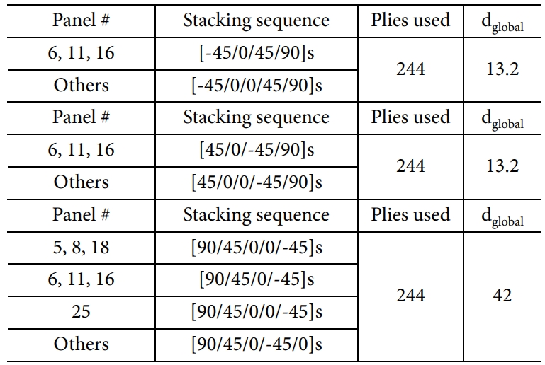 이때 복합재 적층판을 여러 개의 패널로 나누어 응력 분포를 고려하고 낮은 응력 분포가 작용하는 패널의 적층 개수를 줄임으로써 무게 절감 효과를