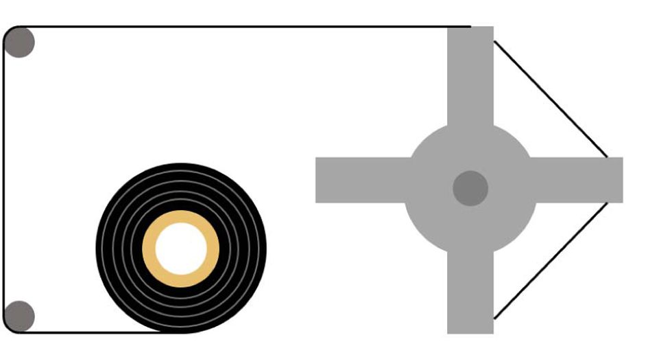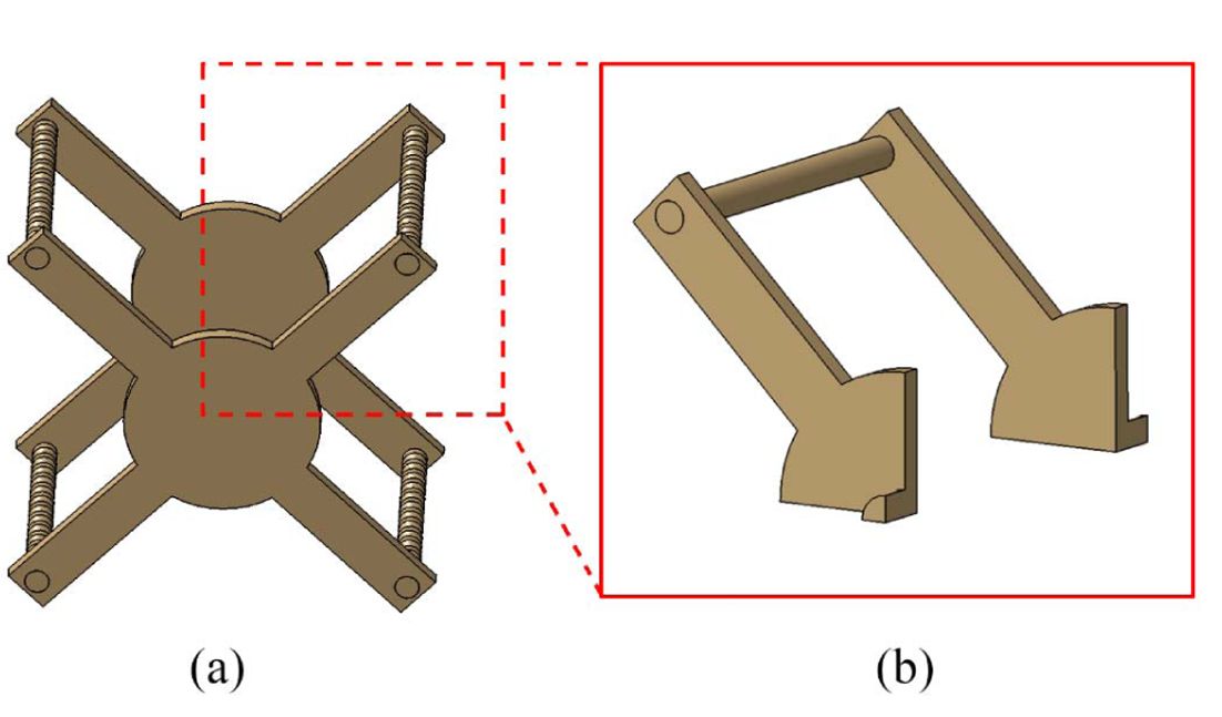 시편이 감겼을 때 변형된 양상이다. 시편이 없는 경우에는 십자 프레임이 자유롭게 팽창하고 이에 따라 빔이 그만큼 동일하게 이동한 반면 (b)에서는