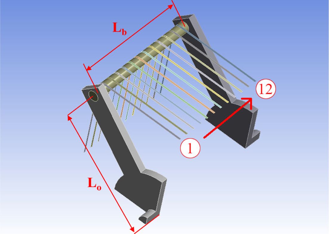 번호를 부여하였다. 빔의 길이와 맨드렐 중앙에서 빔의 중심축까지의 거리는 각각 L0와 Lb로 정의하여 변형량을
