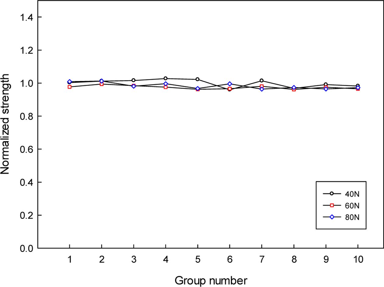 only the initial tension was controlled at 40 N, 60 N, and 80 N. From the
