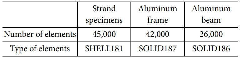 Fig. 2에는 해석에 사용된 최종 모델이 나타나 있다. 실제 빔의 형상에서 토우가 감기는 홈의 위치를 고려하여 12개의 스트랜드 시편