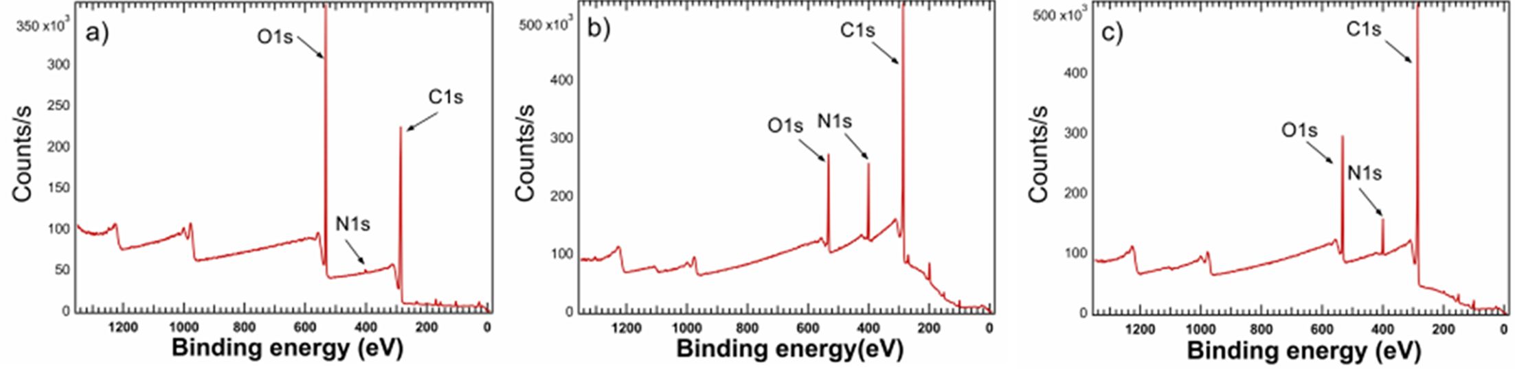 Fig. 11 XPS spectrum for (a) graphene oxide nanoplatelet powder (GONPs), (b) PA15 active layer and (c) (PA/GO)15 active layer [67] |