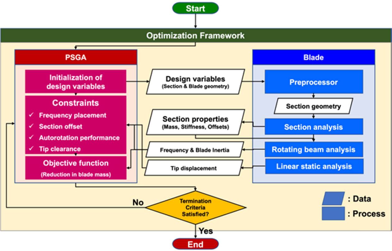 헬리콥터 및 풍력발전기 분야에서 사용되는 블레이드는 블레이드의 단면 크기에 비해 길이가 매우 긴 기하학적인 특징을 갖고 있다. 따라서, 반복적인 계산이 많이 요구되는 블레이드의 초기구조설계 단계에서는, 효율적인 해석을 위해 블레이드의 3차원 구조 형상을 블레이드의 여러 지점에 위치한 단면과 1차원의 보 유한요소모델로 분리하여 해석을 진행하는 것이 효율적이다. 일반적으로 블레이드의 최적 구조설계는 여러 지점에서 단면의 강성과 관성치를 계산한 후, 이를 블레이드의 1차원 유한요소모델에 대입하여 블레이드의 구조동역학적 해석을 진행하며, 초기 설계요건을 만족하는 블레이드 형상이 도출될 때까지 이 과정을 반복수행하게 된다.