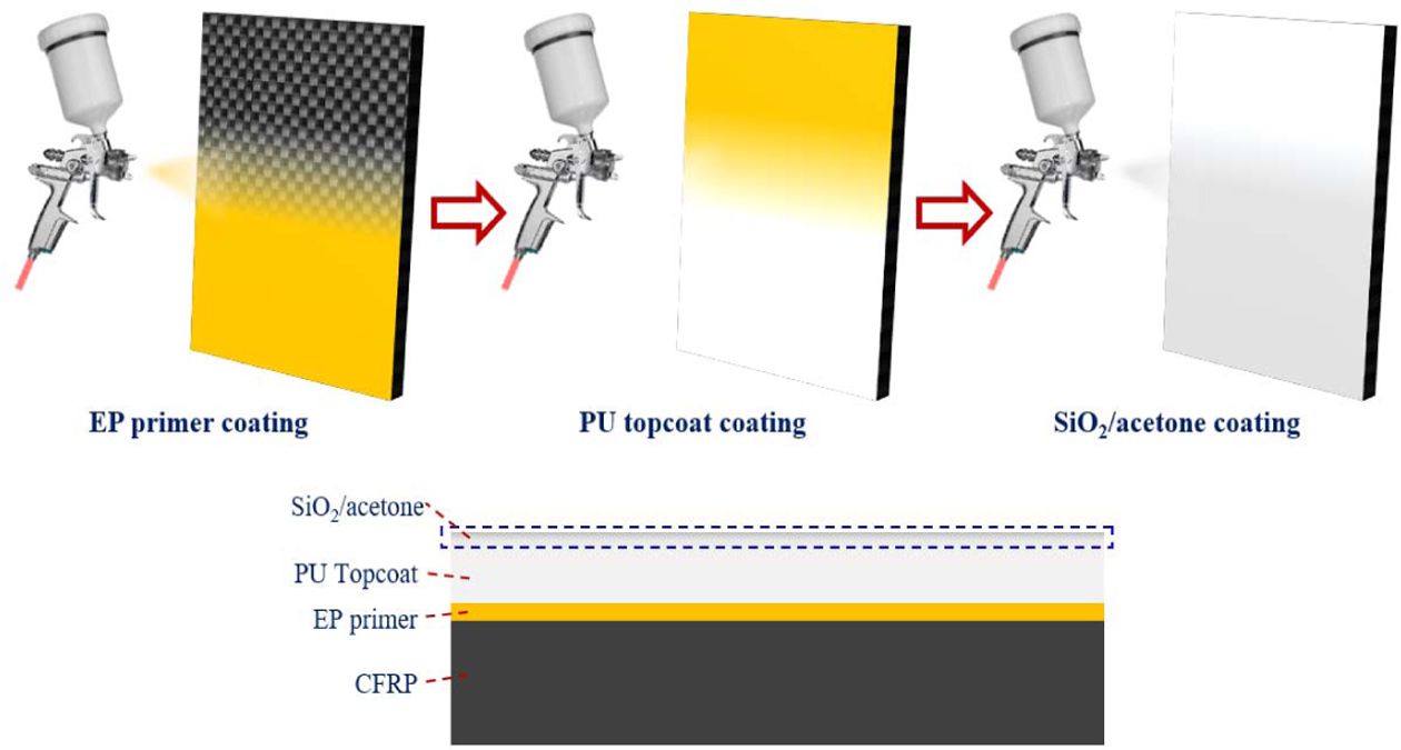 Fig. 1 Spray process of SiO2/PU topcoat |