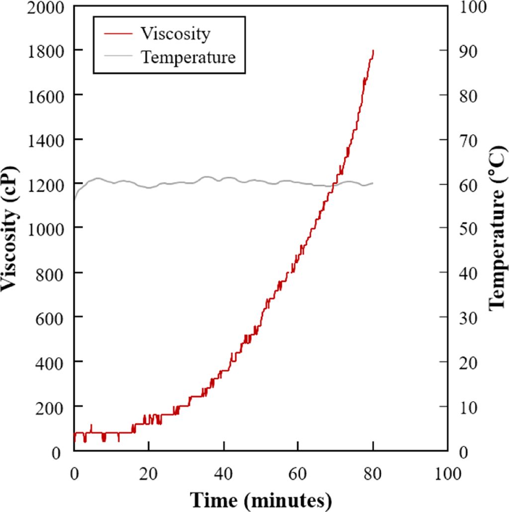 Fig. 2 Viscosity of PU topcoat at 60°C curing temperature |