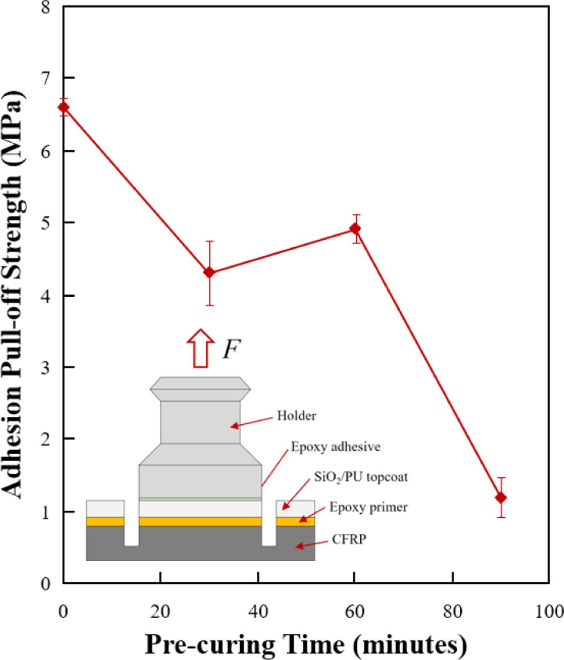 Fig. 8 Adhesion pull-off strength between SiO2 and PU topcoat