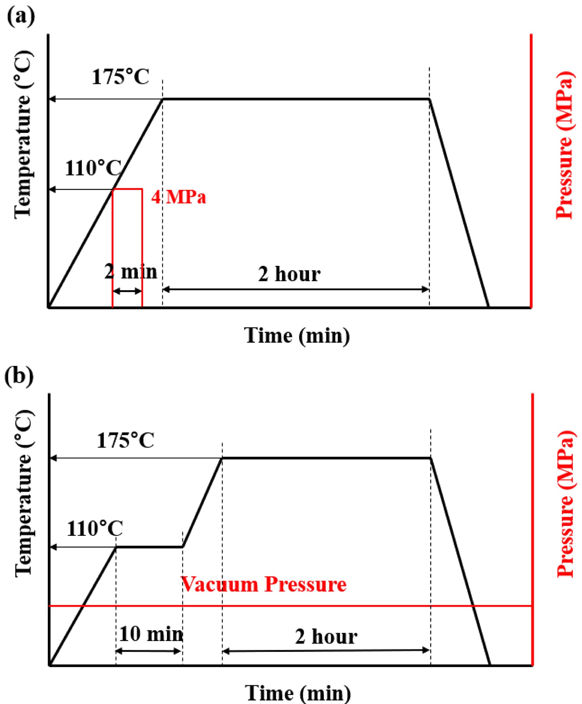 Fig. 3 Cure Cycle; (a) Hot Press, (b) CNT Heater |