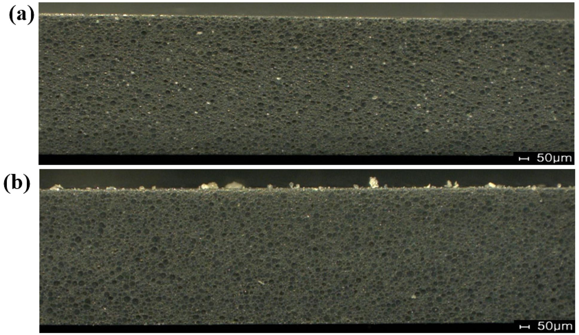 Fig. 4 OM Image; (a) Hot Press, (b) CNT Heater |