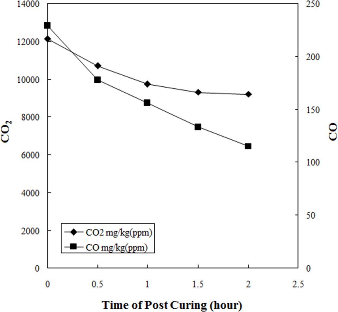 Fig. 7 Results of CO2 and CO of BFC with different post curing time |