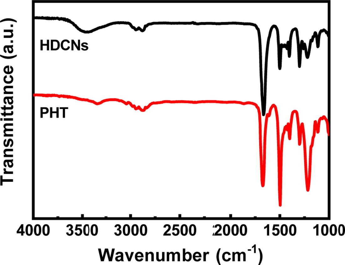 Fig. 2 FT-IR spectra of the HDCNs and the PHT. Reproduced from ref. 5 with permission from Elsevier |