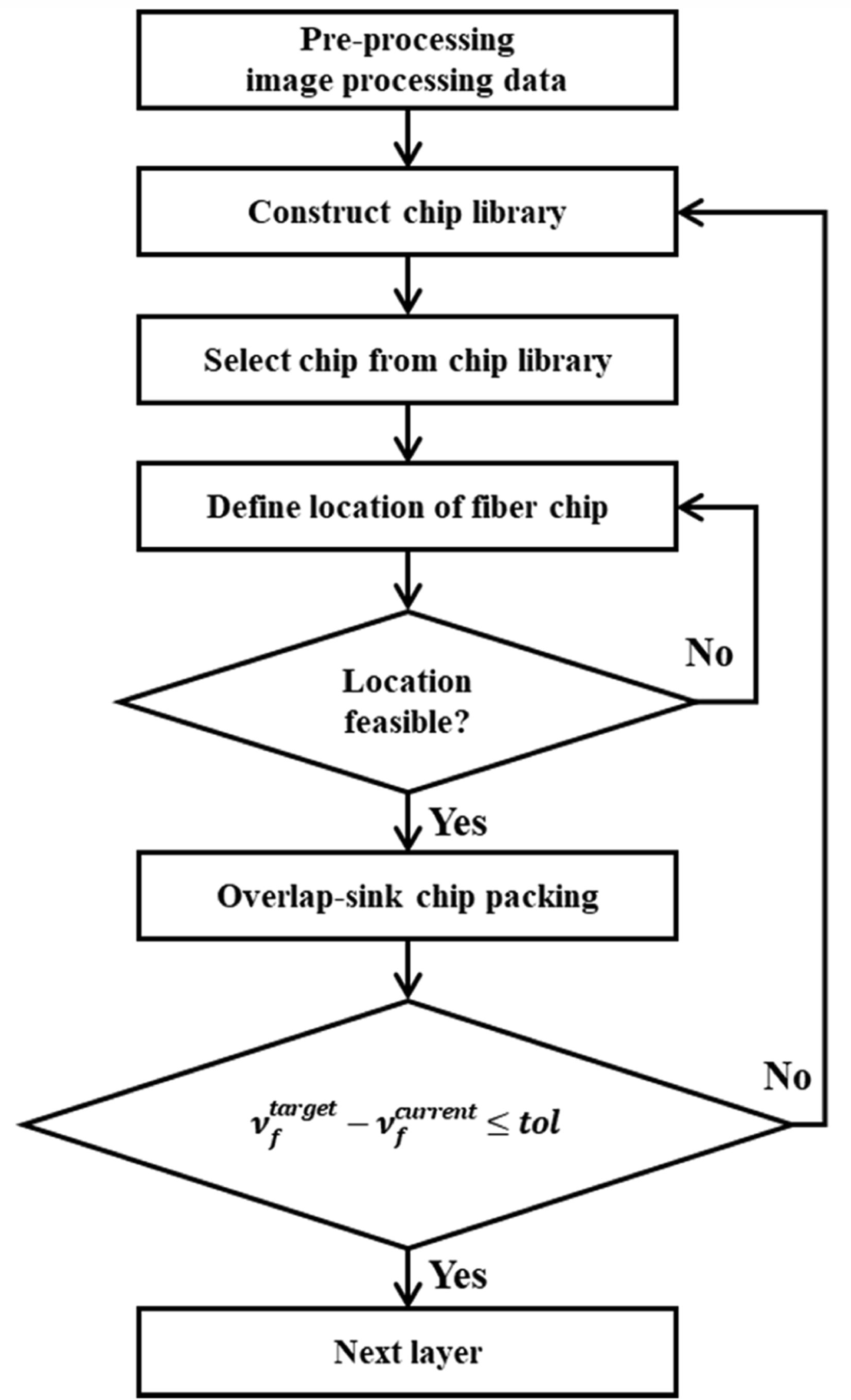 본 알고리즘 전처리 작업은 이미지 프로세싱을 통해 얻은 배향 CDF 데이터를 바탕으로 섬유칩의 라이브러리를 구축한다. 얼마나 많은 섬유칩을 이용하여 라이브러리를 구축할지는 SMC 판과 섬유칩의 크기, 섬유칩의 부피분율을 조합한 수식을 통해 계산할 수 있다.