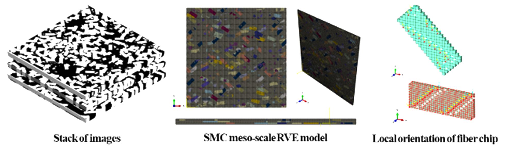 Fig. 9 FEA models of a SMC reconstruction and the geometry of meshed fiber chip |