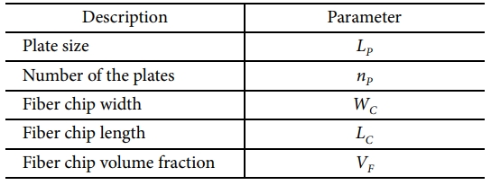 SMC RVE 재구성 알고리즘에서 사용될 입력변수는 SMC 판의 크기(LP), 판의 개수(nP), 섬유칩의 너비 및 길이(WC, LC), 섬유칩의 부피분율(VF)로 구성되어 있다. 추가로 2장에서 소개한 섬유칩의 배향과 부피분율의 누적분포함수 역시 재구성 알고리즘에의 입력변수로 사용된다.
