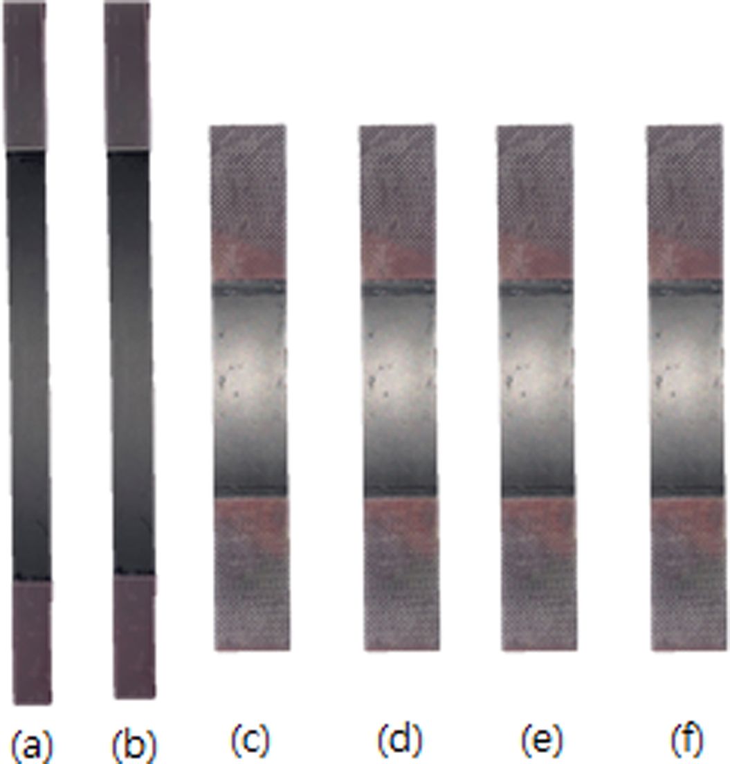 Fig. 2 Composite specimens with different fiber orientations: (a) 0o , (b) 10o , (c) 30o , (d) 45o , (e) 60o , (e) 90o |