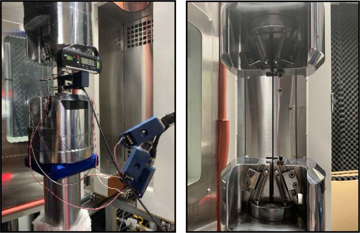 Fig. 3 Experimental setup for tensile and fatigue tests |