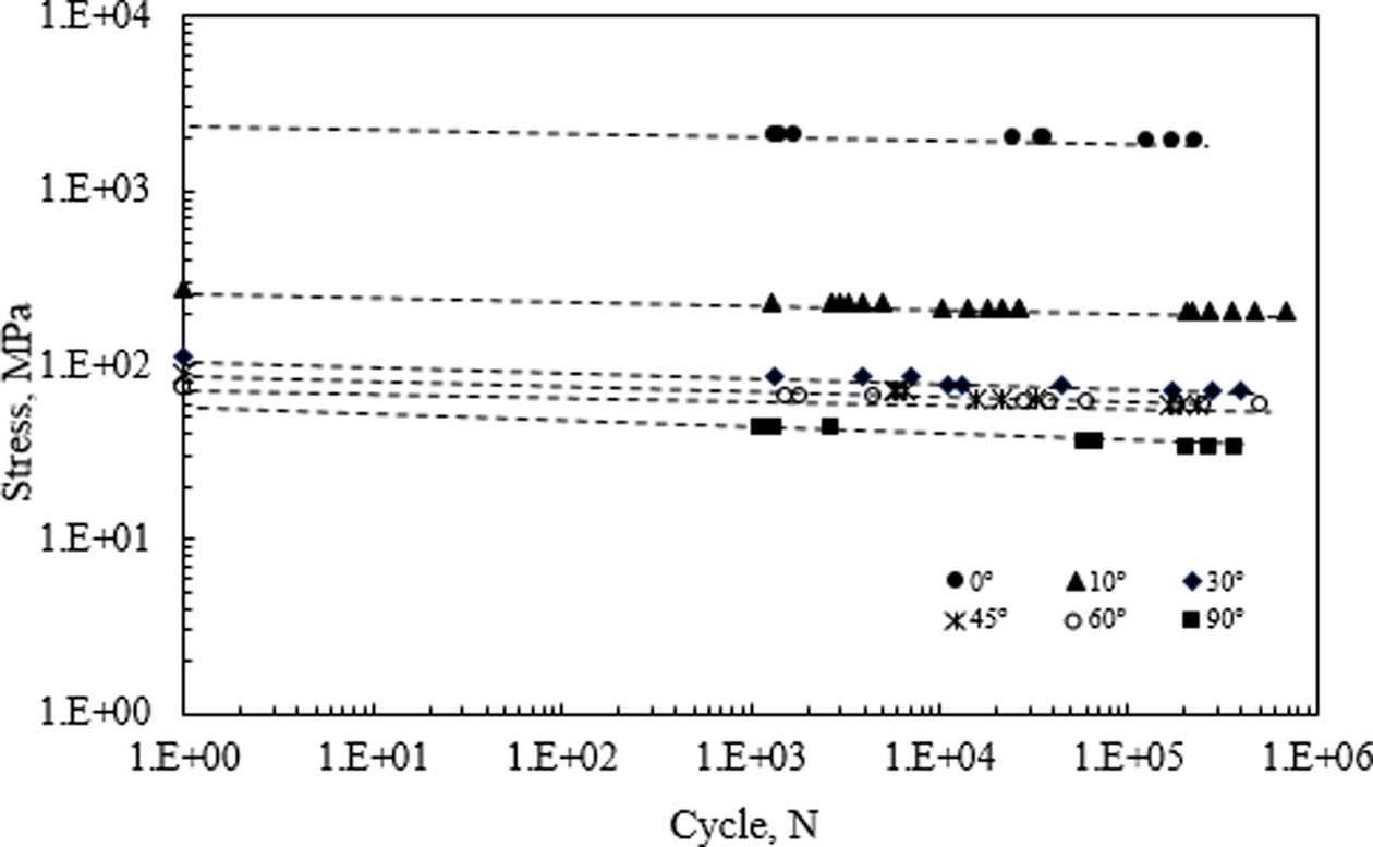 Fig. 6 S-N relationships for off-axis unidirectional carbon/epoxy |